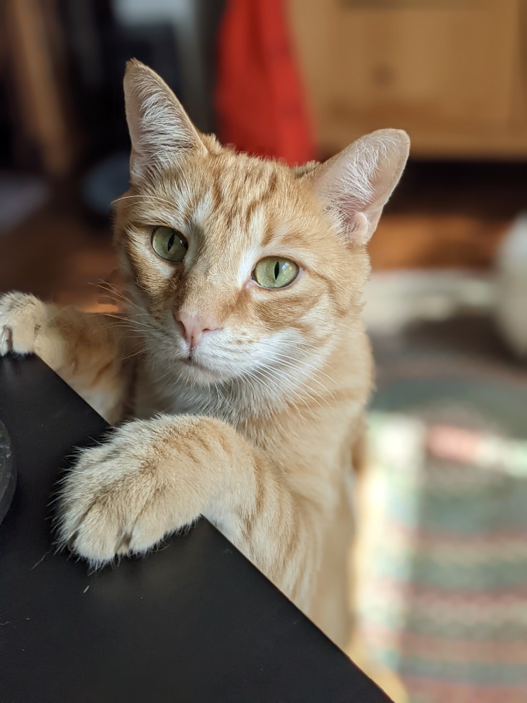 The ‘too many cats’ (left to right): Pierre, Snax, Basil, Beans